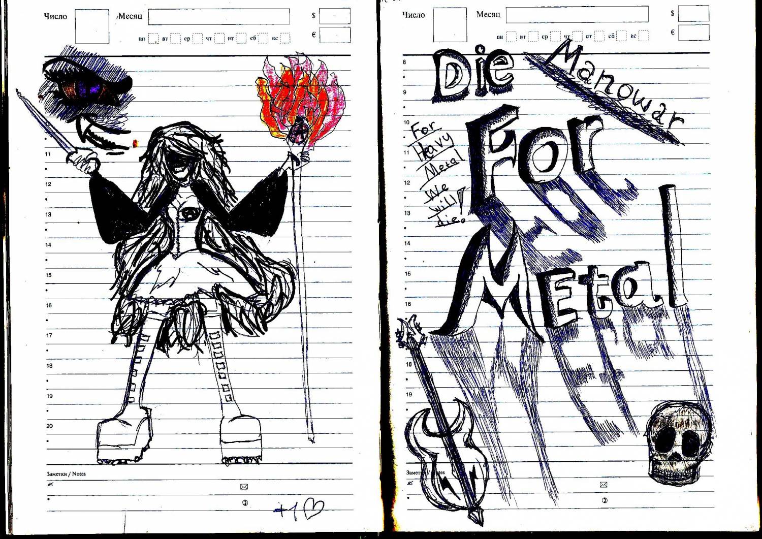 - А? - девушка взглянула на чеха, - да так, ничего, просто ручкой калякаю. Я часто рисую большими буквами названия любимых песен и групп, - Неформалка развернула блокнот и продемонстрировала чеху свои почеркушки.